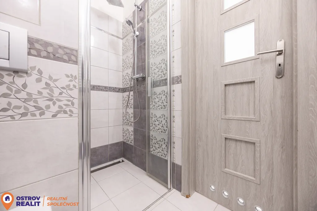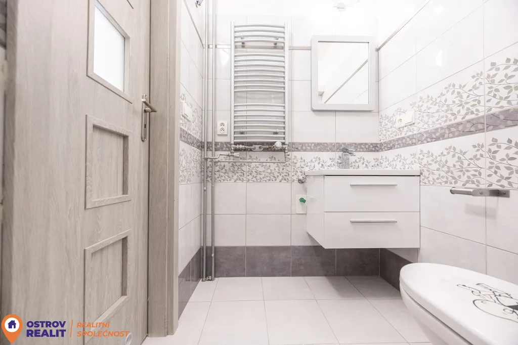Koupelna je vybavena sprchovým koutem a působí čistým, svěžím dojmem. Celý byt je po rekonstrukci, takže vás nečekají žádné další investice – stačí se nastěhovat a bydlet.