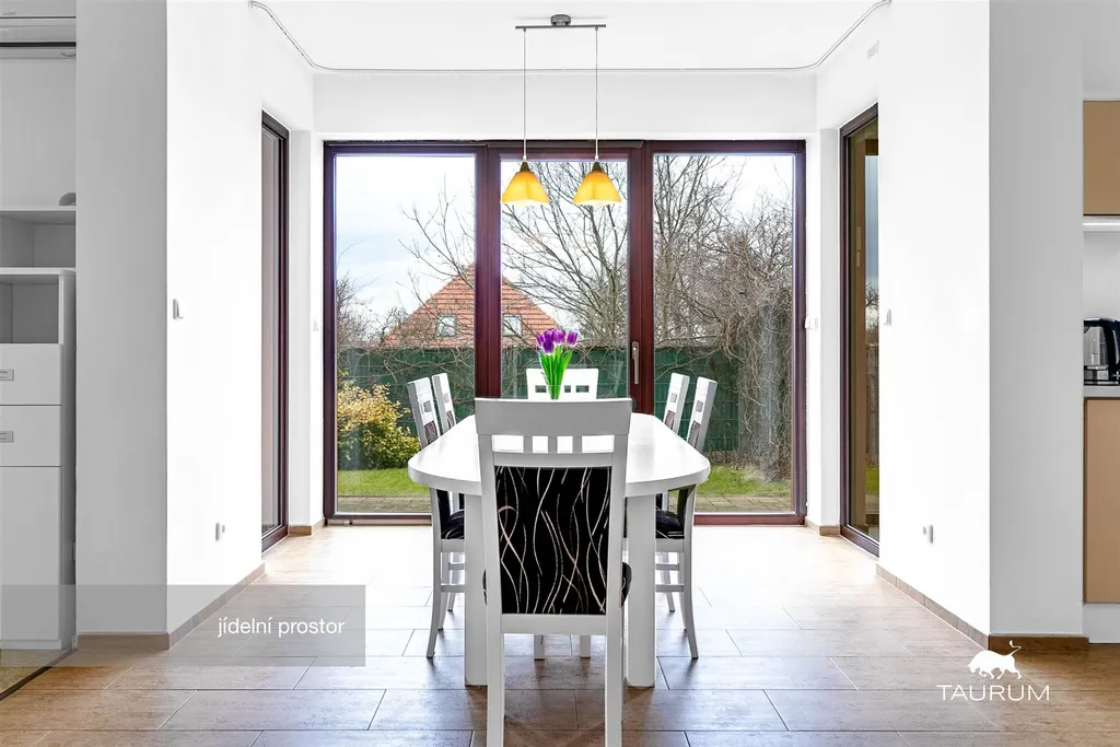 Velkorysé dispoziční řešení domu ocení zejména větší rodina, přičemž nechybí ani prostor pro pracovnu nebo pohodlné ubytování hostů.
