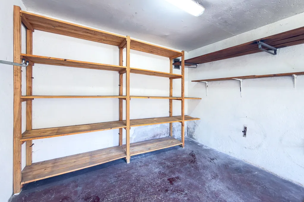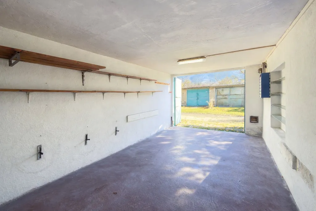 Technické informace: plechová vrata, elektřina, prázdná, regály a police, suchá a udržovaná, ihned k dispozici.
