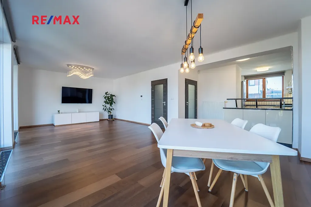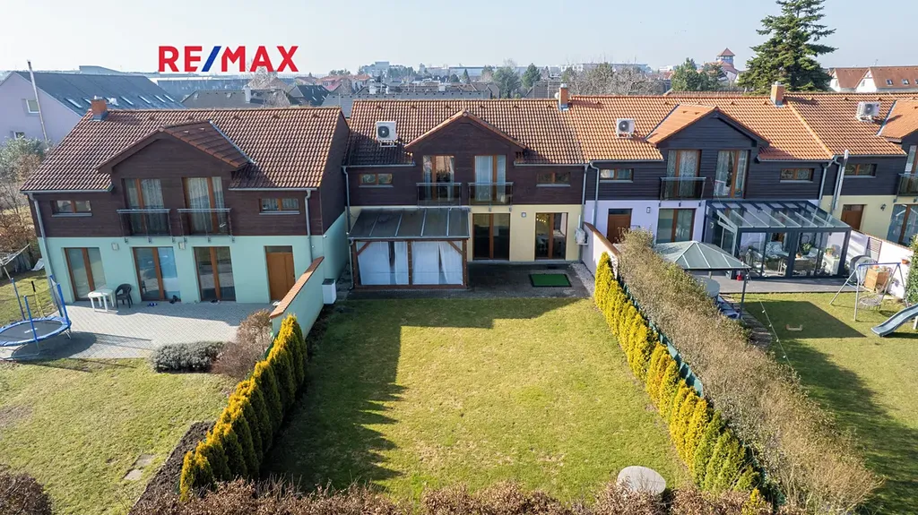 V přízemí domu se nachází velký obývací pokoj, na který navazuje kuchyně. Dřevěná francouzská okna dodávají prostoru maximální světlost a umožňují vstup na terasu a zahradu, kde díky vzrostlým dřevinám majitel nachází klid a soukromí. Na terase je instalována dřevěná pergola s možností zakrytí stěn při nepřízni počasí. Na zahradě je vrtaná studna, na kterou je napojena závlaha pro zahradu. Zahrada je i díky automatické sekačce koncipována jako bezúdržbová.