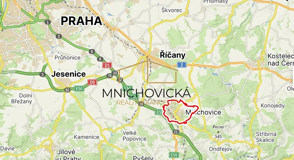 V obci je veškerá občanská vybavenost. Město Mnichovice se nalézá v malebném „Ladově kraji“, má výbornou dopravní dostupnost do Prahy, kdy je možné využít vlakové spojení na Hlavní nádraží, či jet autem po dálnici D1. Pár desítek metrů od pozemku se nachází autobusová zastávka.