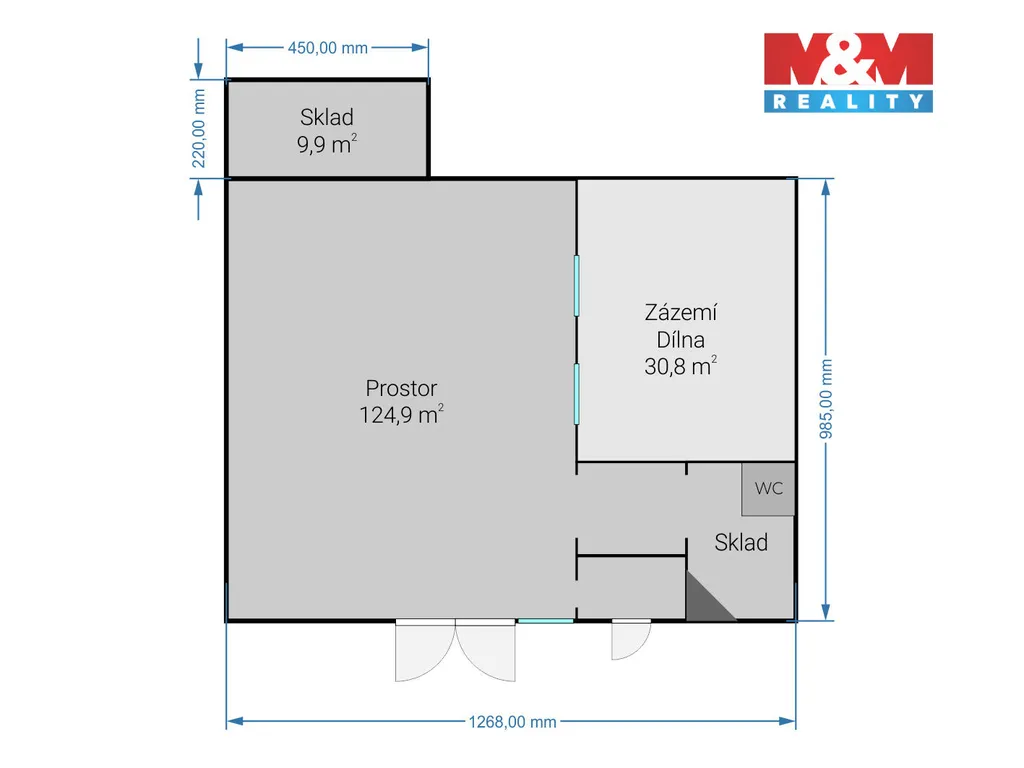 Nemovitost disponuje dvěma samostatnými vstupy, přičemž hlavní vjezd o rozměrech 240 × 234 cm umožňuje pohodlný vjezd automobilů i techniky. V interiéru se nachází hlavní otevřený prostor a oddělená místnost s krbovými kamny vhodná jako kancelář, zázemí nebo odpočinková část. Součástí je také suché WC.
