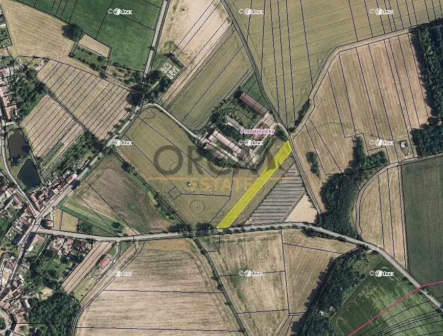 Exkluzivně nabízíme pozemek ve výlučném vlastnictví v k.ú. Prostějovičky, okres Prostějov. Jedná se o parcelu č. 929 o celkové výměře 3240 m2, zapsanou na LV 609. Pozemek je široky cca 16 m, dle katastru je evidován jako orná půda. V územním plánu pozemek leží v návrhové ploše smíšené výrobní (Vs). V současné době je pozemek propachtován, a to na dobu neurčitou s výpovědní lhůtou 1 rok.