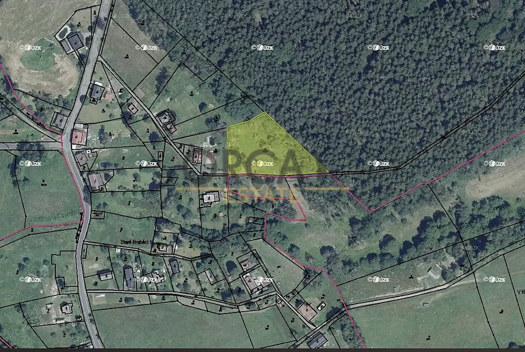 Nabízíme spoluvlastnický podíl ve výši id. 1/2 na zajímavém investičním pozemku v k.ú. Staré Hraběcí, okres Děčín. Jedná se o parcelu č. 118/12 zapsanou na LV 11214 o podílové výměře 2409 m2. V nejširší části pozemek měří cca 96 m. Dle katastru je pozemek evidován jako trvalý travní porost, je rovinatý, přístupný z polní cesty a nachází se v klidné části na jihovýchodě obce. V územním plán pozemek leží v ploše krajinné zeleně.