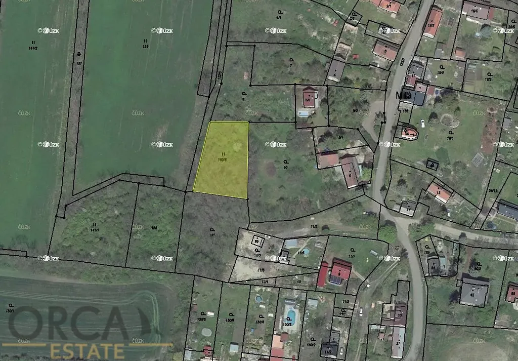 Exkluzivně nabízíme do výlučného vlastnictví pozemek v k.ú. Milá, okres Most. Jedná se o parcelu č. 132/5 zapsanou na LV 222 o výměře 1085 m2 a šířce cca 31 m. Dle katastru je pozemek evidován jako trvalý travní porost, je svažitější a nachází se jihovýchodně od obce Bečov. V územním plánu leží v ploše zeleně nezastavitelných soukromých zahrad.