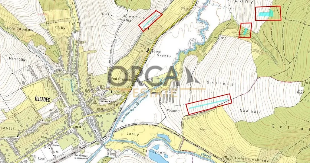 Nabízíme k prodeji pozemky v k. ú. Újezdec u Luhačovic, okres Uherské Hradiště. Jedná se o lesní pozemky, ornou půdu a ostatní plochu. Jde o pozemky ve výlučném vlastnictví, celková výměra činí 9308 m2. Pozemky jsou situovány severovýchodně od Újezdce. Pro více informací o nabízených pozemcích kontaktujte makléře.