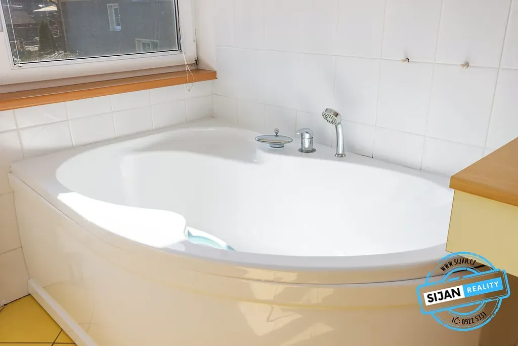 Samostatně stojící dům je řešen jako 5+kk s propojením na zahradu z obývacího pokoje.