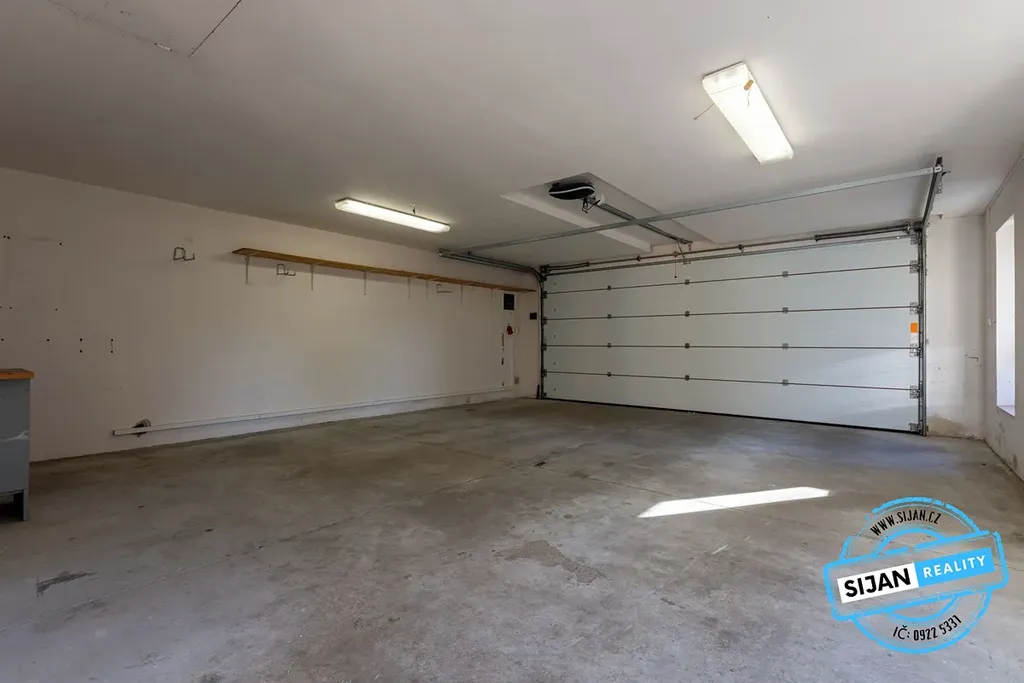 Součástí prodeje je i prostorná dvojgaráž s parkovacím stáním před ní.