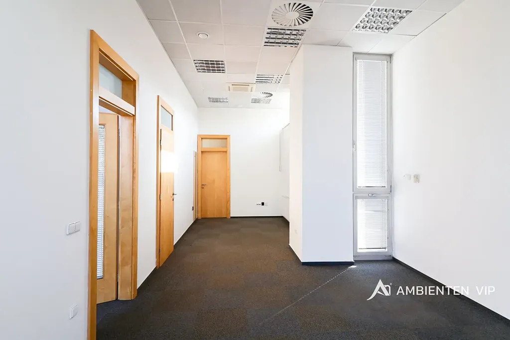 Prostory se nachází v 1. NP budovy a disponují pěti kancelářemi, dvěma zasedacími místnostmi, 2x sociálním zázemím s kuchyňkou a archivem. Jedna z kanceláří nabízí možnost využití jako open space pro 10 – 12 osob či rozdělení posuvnými příčkami až na 3 samostatné menší kanceláře. Všechny kanceláře a zasedací místnosti jsou vybavené klimatizačními jednotkami.