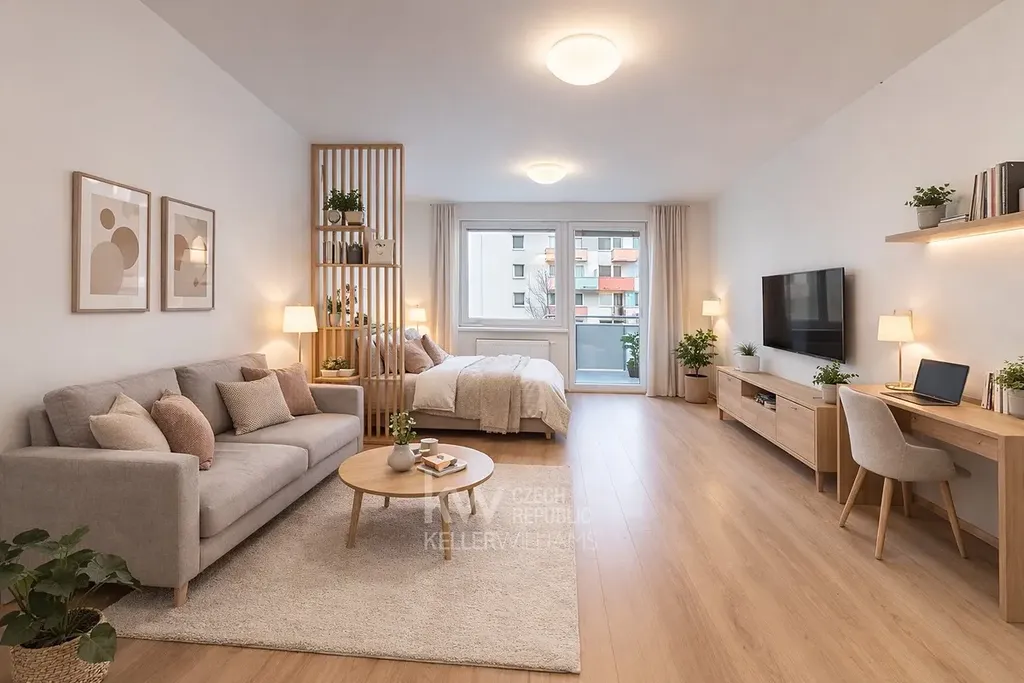 - Dispozice je funkční a praktická, ideální pro komfortní bydlení jednotlivce.