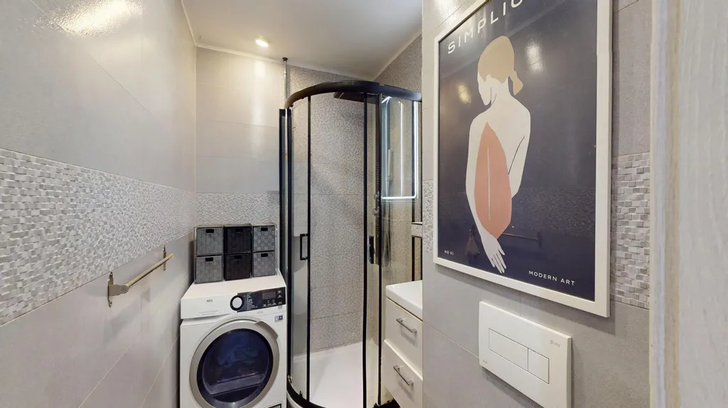 V domě je obyvatelům k dispozici sušárna, prádelna a mandl, což zvyšuje komfort bydlení.