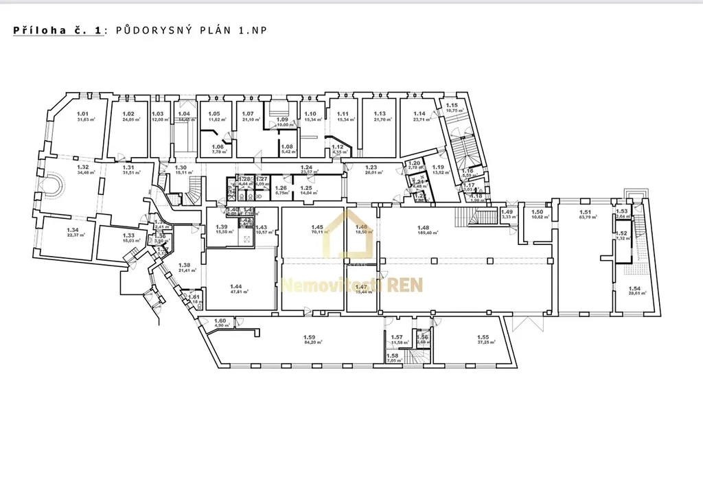 Dispozičně se jedná o sklad v I. NP, rozdělený do několika místností dle původního využití, konkrétně místnosti č. 1.39, 1.40, 1.41, 1.42, 1.43 a 1.44. Většina prostor je bez oken, místnost č. 1.44 je prosvětlena denním světlem prostřednictvím světlíku. Je třeba počítat s tím, že v letních měsících může být v prostorách tepleji. K dispozici WC a výlevka.