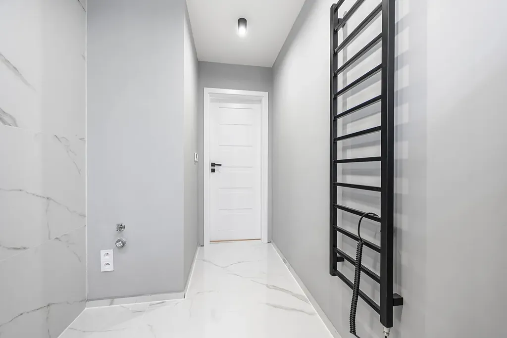 Kuchyně je vyrobena na míru a kompletně vybavená spotřebiči (elektrická trouba, mikrovlnná trouba, indukční deska, myčka). Kuchyně je velkorysá s důrazem na dostatek úložných prostor a pohodlí při každodenním využívání. Velký obývací pokoj s kuchyní je dominantou tohoto bytu. Součástí bytu je také prostorná šatna a velká chodba s možností vybudování dalších úložných prostor. Garážové stání se pak nachází jen pár kroků od výtahu.