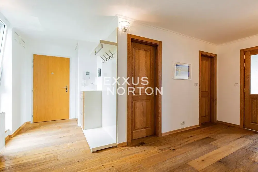 Byt disponuje vstupní chodbou, obývacím pokojem s kuchyňským koutem, 2 ložnicemi, šatnou, pracovnou, technickou místností, 2 koupelnami, samostatnou toaletou, balkonem a lodžií. V ceně nájmu jsou zahrnuta dvě garážová parkovací stání.
