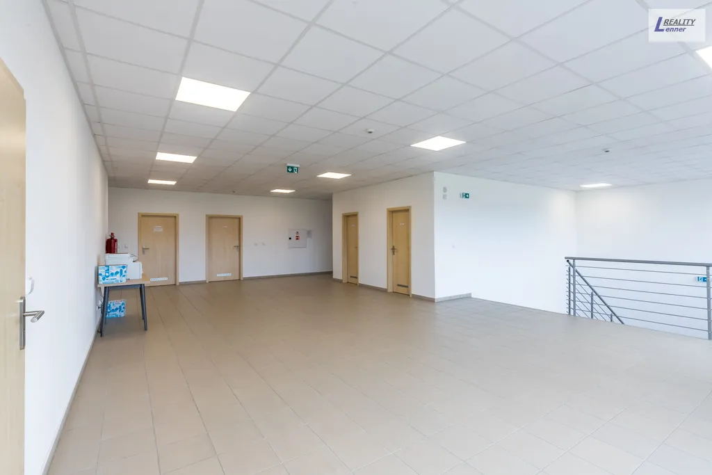 V první patře areálu se nachází cca 300 m2 kancelářských prostor a příslušenství: oddělení nákupu, oddělení kvality, vedoucí výroby, kancelářské místnosti, spisovna, zasedací místnost, serverovna, kuchyňka atd.