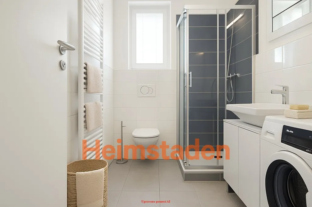 Koupelna je vybavena vlastní pračkou. V přízemí domu je navíc k dispozici společná prádelna s další pračkou a sušičkou za poplatek. Dům disponuje výtahem a je zde možnost pronájmu garážového stání.