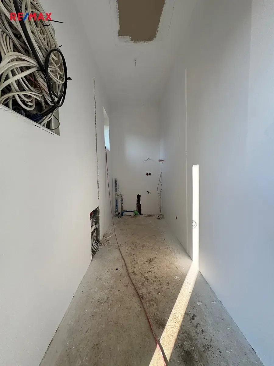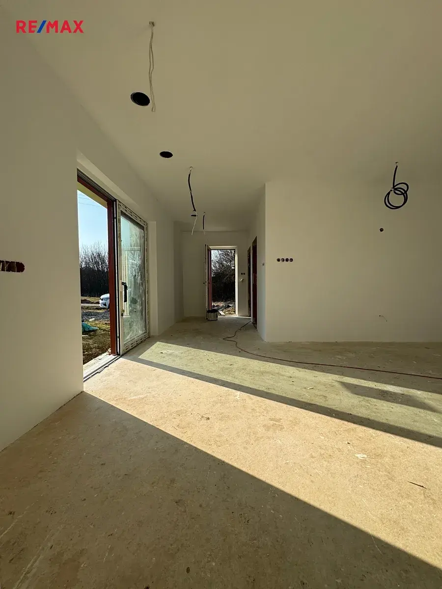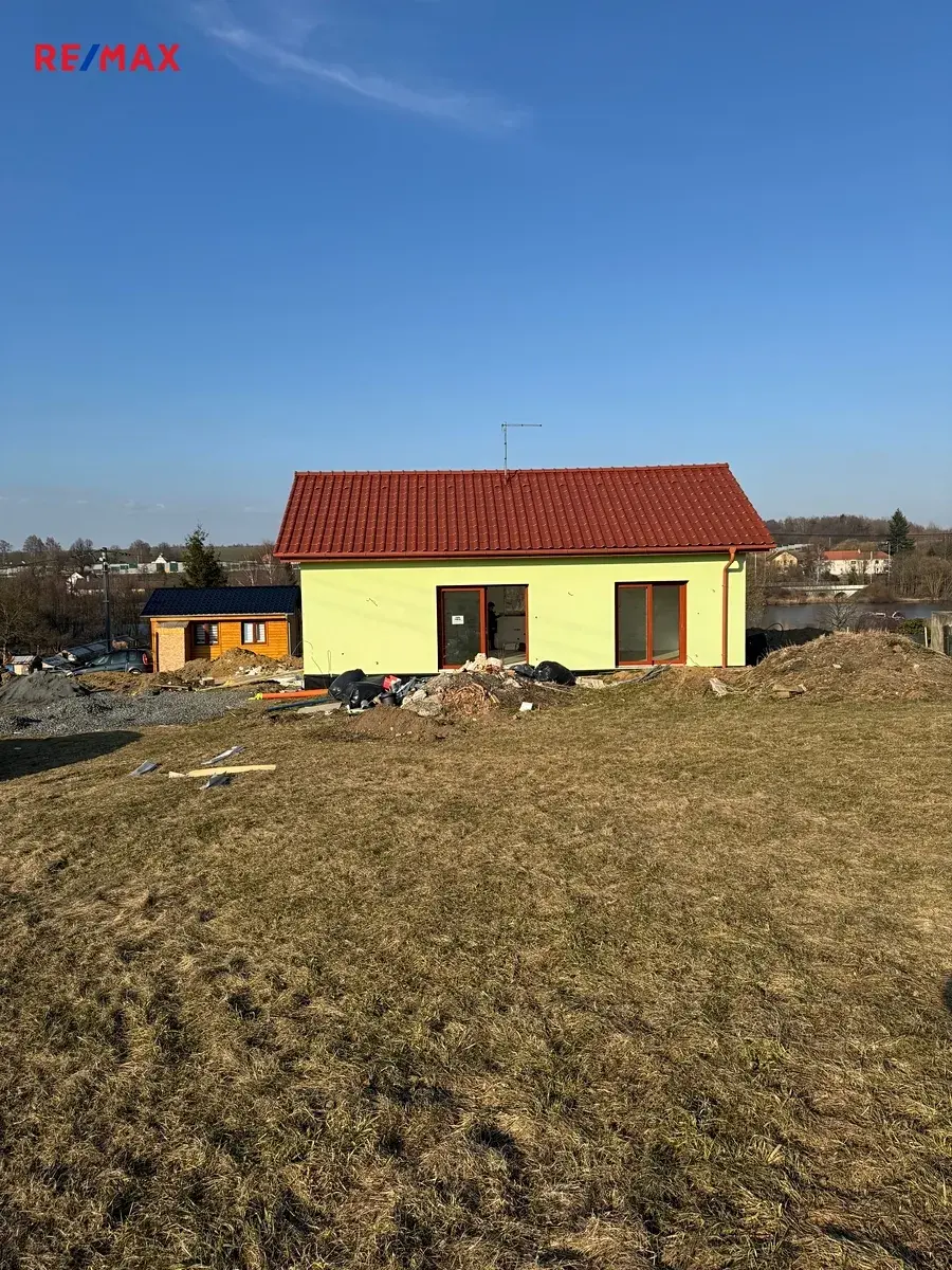 Exkluzivně nabízíme menší novostavbu na krásném koncovém pozemku o velikosti1058 m2. Příjemná velikost poskytuje novému majiteli široký záběr vlastní realizace (skleník, garáž, posezení, bazén, vířivka, kurník, kotec ap.) Taktéž poskytuje dostatečné soukromí. Vlastní dům je menších rozměrů (6,5 x 11,35m). Vchodem se dostaneme do prostorné chodby (3,8m2), ze které se dostaneme do technické místnosti (4m2), ve které se počítá s elektrokotlem, umístění rekuperace, pračky a sušičky na prádlo. Dále je koupelna s WC (9,6m2), obývací pokoj s kuchyní (20,2m2), ložnice (11,5m2) ke které patří samostatná velká šatna (4,8m2). Nad těmito prostory vede půda, ale neumožňuje pohyb ve stoje. Dům je situován k maximální úspoře energií. Kvalitní portálová okna na jižní stranu zajišťují vytápění i v zimních měsících. Topení v domě je řešeno podlahovým vytápěním a skvěle řešenou rekuperací. Dům je napojen na obecní vodovod, přitom ještě disponuje vlastní kopanou studnou. Chybět nebude ani kompletní výstavba čističky odpadních vod a svedení dešťové vody do retenční nádrže. Na fotkách je ještě vidět rozpracovanost stavby, ale k prodeji bube vše srovnáno a vyklizeno. Dům je řešen bezbariérově. Nový majitel má příležitos dodělat prostory dle svého vkusu a může okamžitě bydlet. Veškerá byrokracie je již vyřízena.