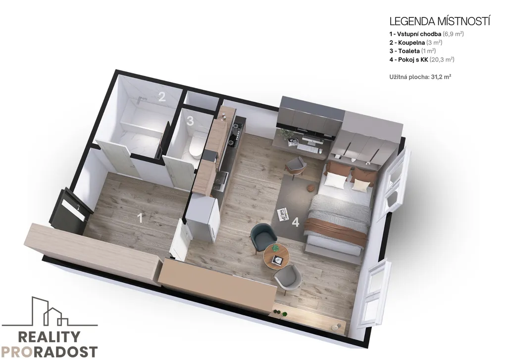V zastoupení majitele nabízíme k prodeji byt o dispozici 1+kk v městské části Brno-Bohunice, ulice Havelkova. Nabízený byt má výměru 31,2m² a je situován v 6. podlaží ve 12 podlažním panelovém domě s novým výtahem.