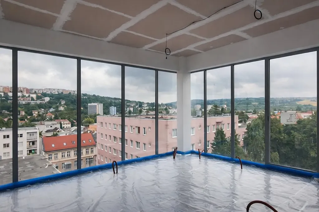 V bytě jsou dokončeny nosné konstrukce, okna, základní rozvody a část instalací. Naopak chybí finální povrchy podlah, kompletní vnitřní povrchové úpravy, sanitární vybavení, kuchyňská linka a část technologií. Tento stav umožňuje přizpůsobení interiéru individuálním požadavkům.