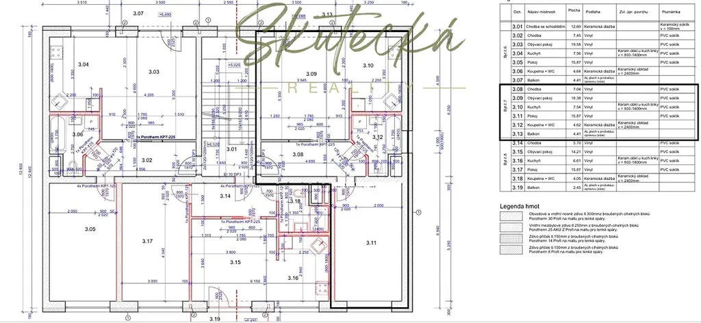 Bytová jednotka se nachází ve 3. patře novostavby nízkoenergetického bytového domu, kolaudované v roce 2025. Celková plocha bytu činí 60,36 m2, podlahová plocha bytu je 53,45 m2, bytu přináleží prostorný balkon, sklep s možností užívání společné kolárny umístěné v přízemí bytového domu. Bytová jednotka je vybavená prostornou kuchyňskou linkou s kvalitními spotřebiči (sporákem, myčkou na nádobí a digestoří). Podlahy v bytě jsou vinylové v kombinaci s dlažbou (sociální zařízení).