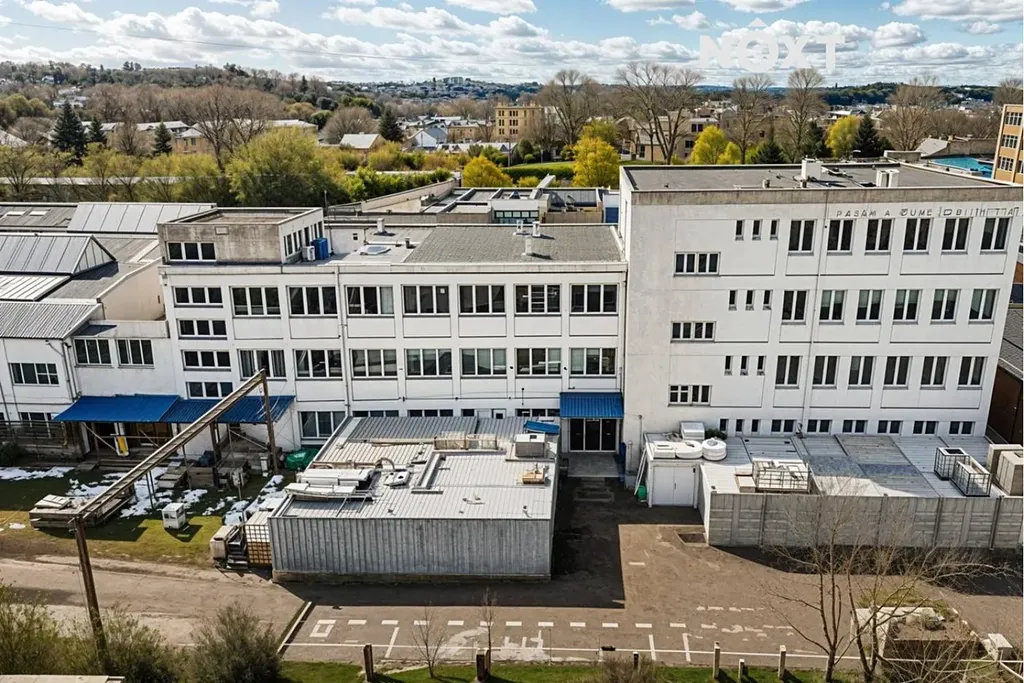 Budova nabízí flexibilní prostory pro kanceláře, služby, sklady nebo lehkou komerci.