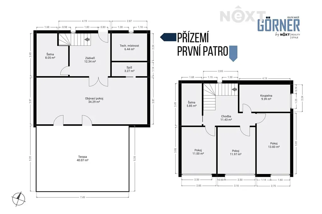 - 2 koupelny, šatna a technická místnost / pracovna