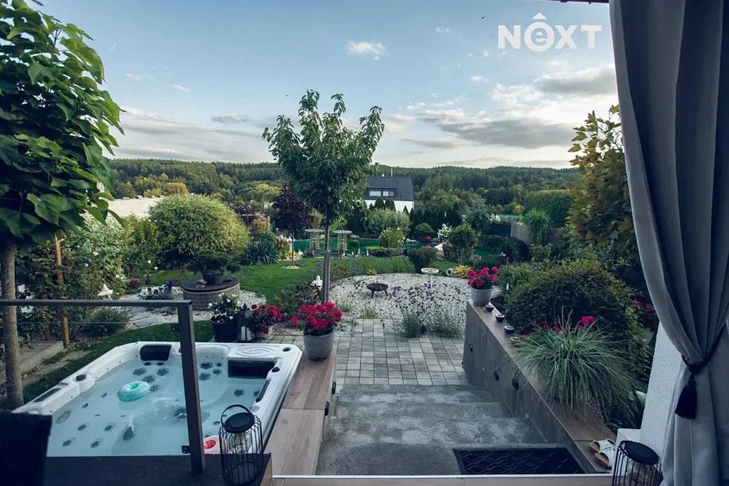 Zahrada je skutečným srdcem této nemovitosti. Byla navržena odborníkem a dotažena do posledního detailu, bez kompromisů a s investicí v řádech milionů korun.