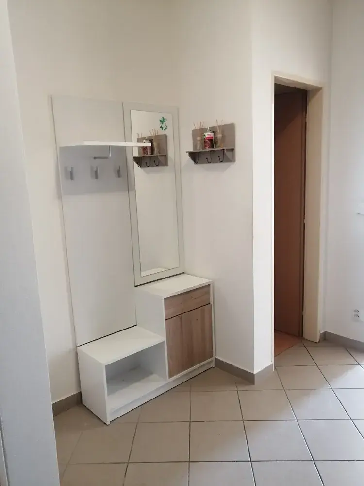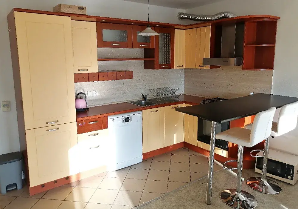 Nabízíme k pronájmu byt OV 2+kk v Brně, Komíně na ulici Vavřinecká. Byt o výměře 66 m2 s terasou o výměře 10 m2 se nachází ve 2.NP cihlového domu. Byt je nezařízený a je situován ložnicí na SZ a obývacím pokojem na JV. Ze vstupní předsíně s věšákovou stěnou a vestavenou skříní je vchod do koupelny o výměře 4 m2 s vanou a s místem na pračku a na samostatné wc, kde je umístěn plynový kotel. Vpravo je vstup do pokoje o výměře 32 m2 s kuchyňskou linkou a dvěma vstupy na terasu. Vlevo je vstup do ložnice o výměře 18 m2. Byt je nezařízený, jeho součástí je pouze kuchyňská linka s vestavěnou lednicí, myčkou, varnou deskou, barovým pultem se 2 barovými stoličkami a TV skříňkou. Na oknech jsou vertikální žaluzie.