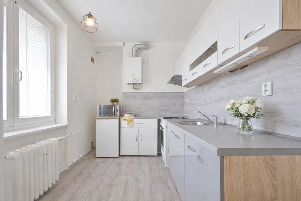 Byt nabízí praktické dispoziční řešení se dvěma obytnými pokoji, samostatnou kuchyní, předsíní, koupelnou s vanou, samostatným WC a menší spíží, která poskytuje další úložný prostor. Z jednoho z pokojů je vstup na lodžii. Byt se prodává ve stavu a s vybavením dle fotografií. První čtyři fotografie v inzerátu jsou vizualizace.