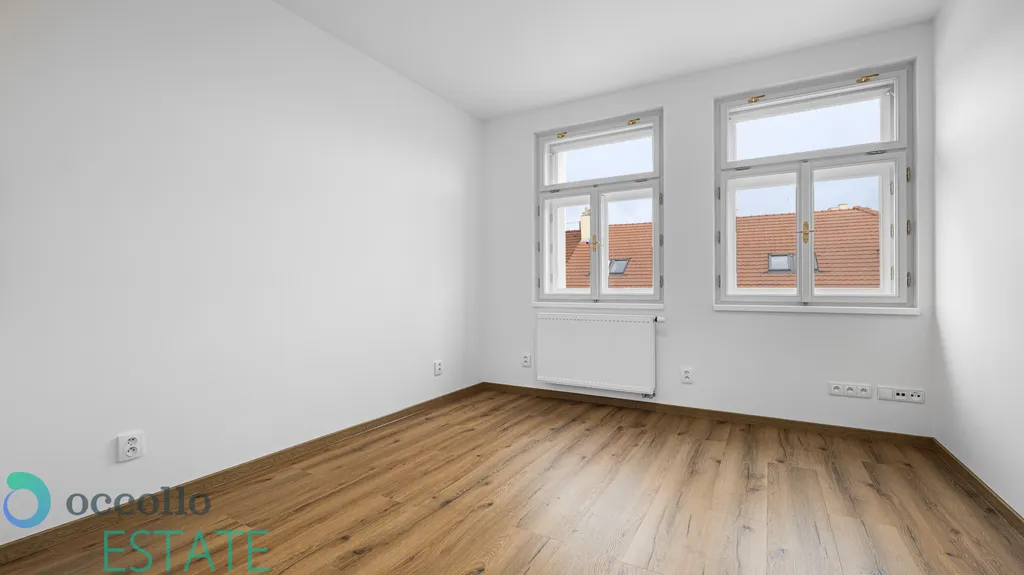 Hlavní pokoj s okny orientovanými do ulice i do vnitrobloku
