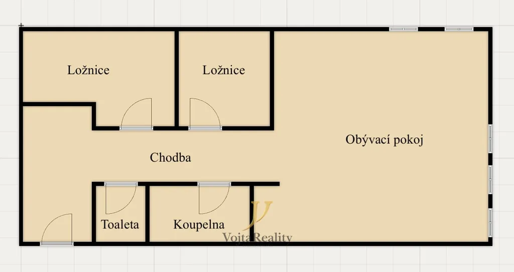 Dispozice bytu zahrnuje prostornou vstupní chodbu, 2 neprůchozí ložnice, koupelnu, samostatnou toaletu a obývací pokoj s kuchyňským koutem. Kuchyň je vybavena novou kuchyňskou linkou se sklokeramickou varnou deskou, horkovzdušnou troubou, myčkou nádobí a lednicí s mrazicím boxem. V koupelně se nachází sprchový kout, přípojka na pračku a elektrický topný žebřík. V bytě jsou instalována plastová okna s trojskly, vytápění je zajištěno prostřednictvím radiátorů. Díky zdařilé rekonstrukci se jednotka vyznačuje nízkými provozními náklady.