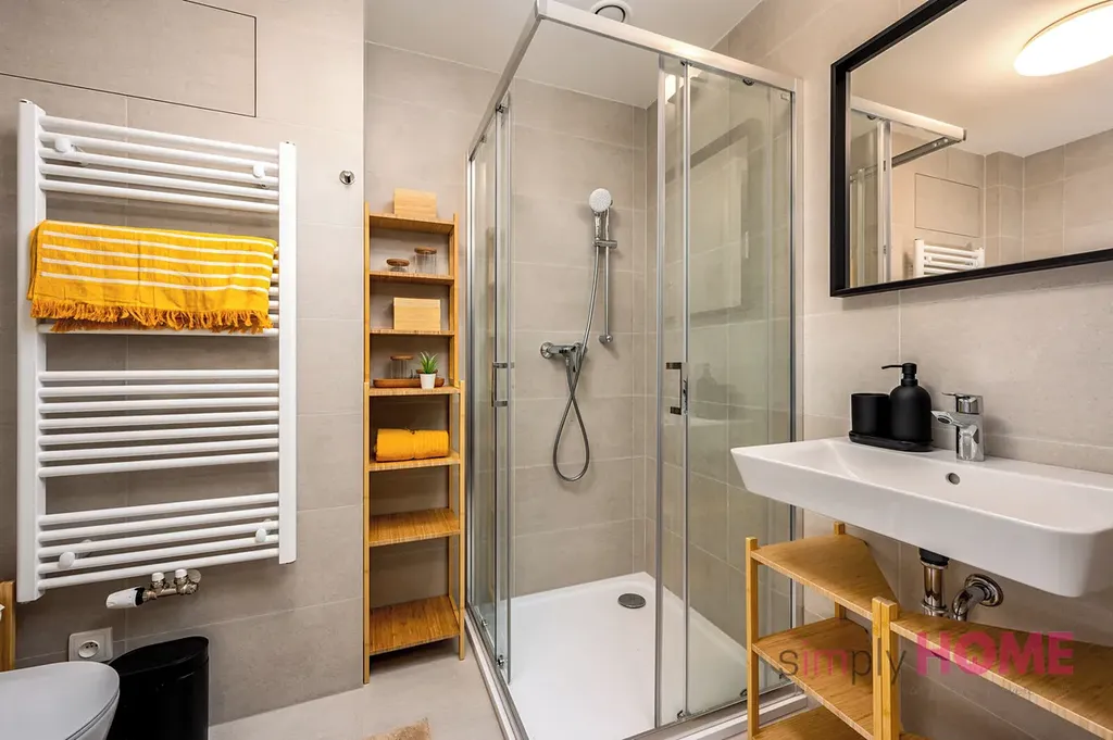 Byt je kompletně vybavený nábytkem a spotřebiči dle fotografií, a to vč. pračky, lednice s mrazákem, projektoru a zvukové soustavy. V bytě je nastavena chytrá domácnost s projením přes Apple Home Kit nebo Google Home. Připojení k internetu je řešeno přes optickou páteř s rychlostí 1GB/s.