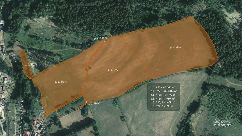 Velkou výhodou je přístup hned ze tří stran, což zajišťuje komfortní obhospodařování i bezproblémovou logistiku. Pozemky jsou ve výhradním vlastnictví, bez právních vad, zástavních práv či jiných omezení evidovaných v katastru nemovitostí.