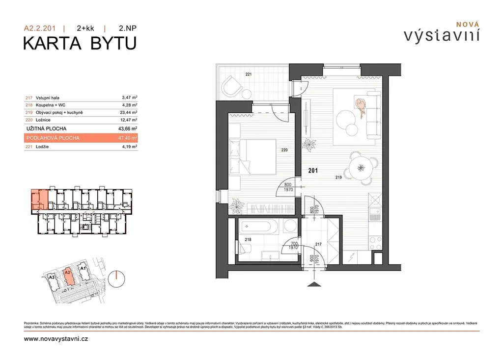 • Dispozice 2+kk s podlahovou plochou 47,4 m2