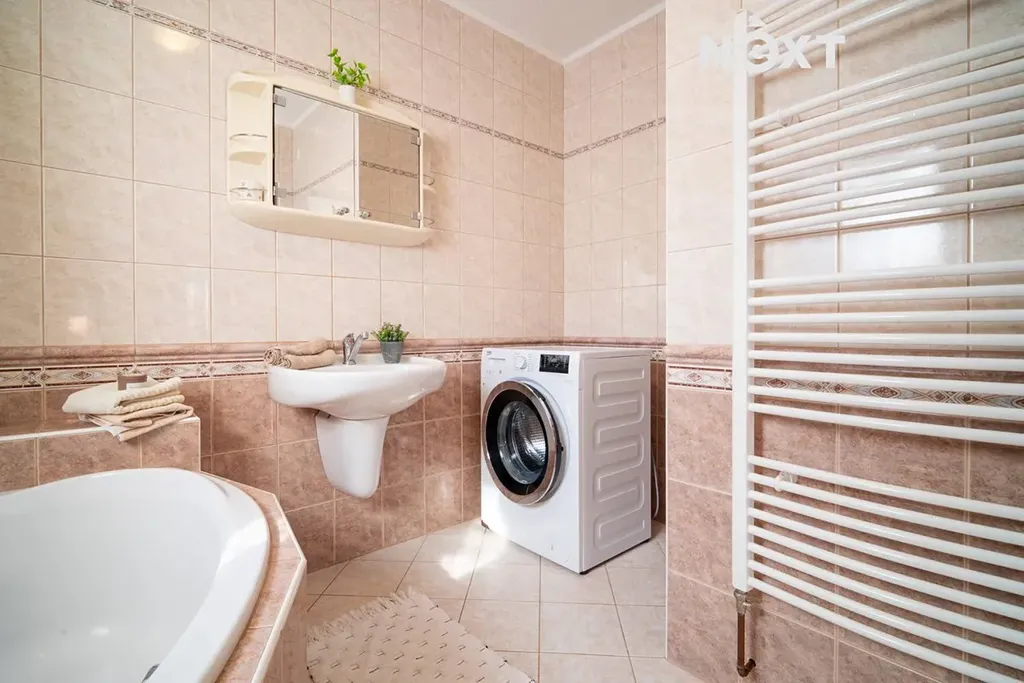 Vytápění domu zajišťuje tepelné čerpadlo, ohřev vody pak elektrický bojler, takže dům nabízí efektivní a úsporné provozní náklady.