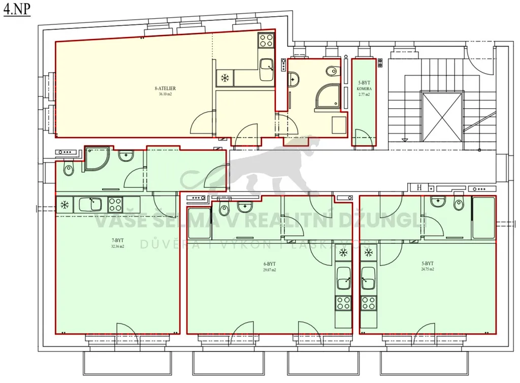 Všechny jednotky mají německé kuchyně Céline s vestavnými spotřebiči.
