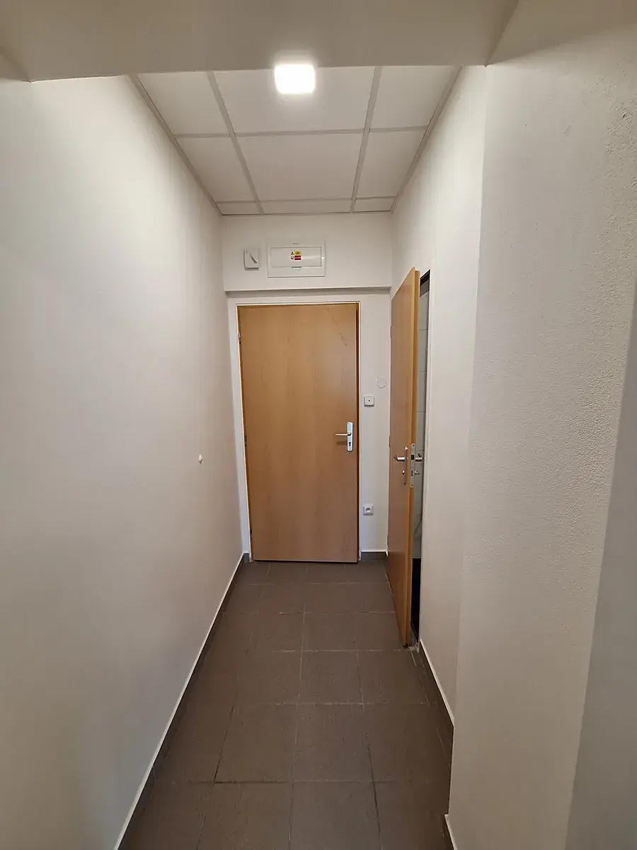 Pěkný byt 1kk po rekonstrukci, chodbička, koupelna se sprchovým koutem a WC.
