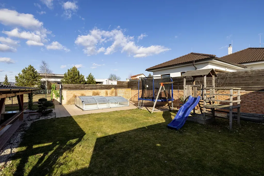 Exkluzivně nabízíme k prodeji moderní bungalov 4+kk s krásnou okrasnou zahradou a samostatnou dvougaráží v obci Čebín, který je vzdálený pouhých 15minut od hranice Brna.
