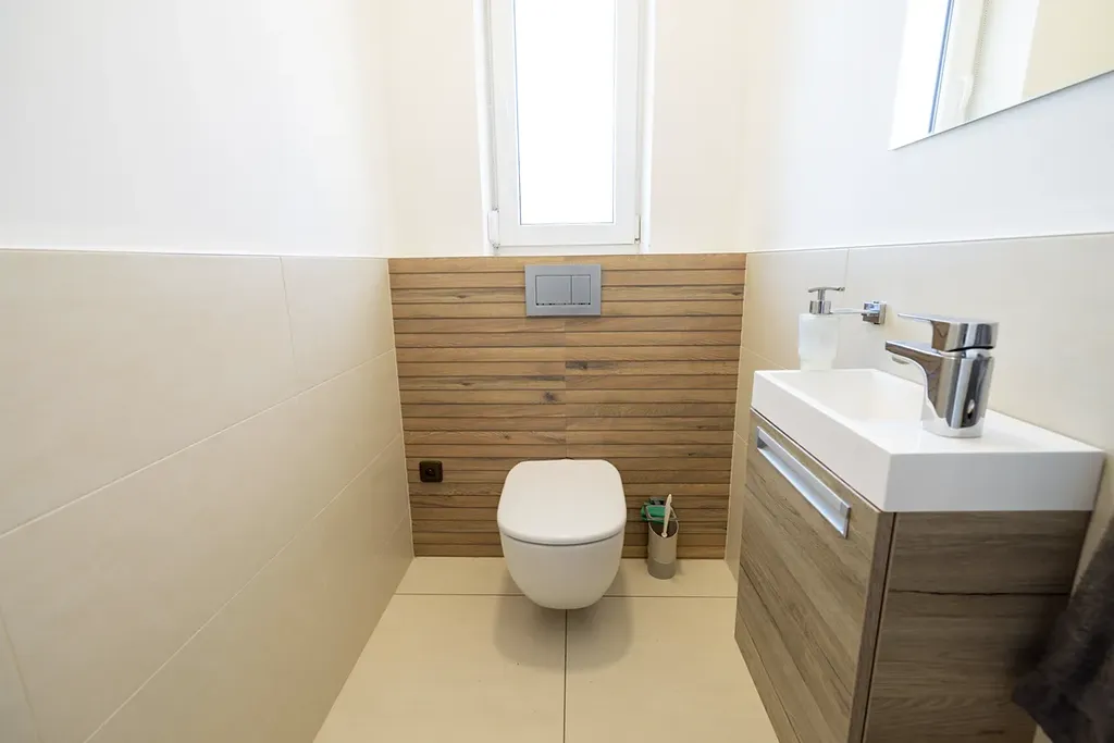 Z technologií je zde dále jednotka na změkčování vody, solární panely na ohřev vody, alarm značky Jablotron, klimatizace a v neposlední řadě i předokenní žaluzie a retenční nádrž na dešťovou vodu. Energetická třída domu B.