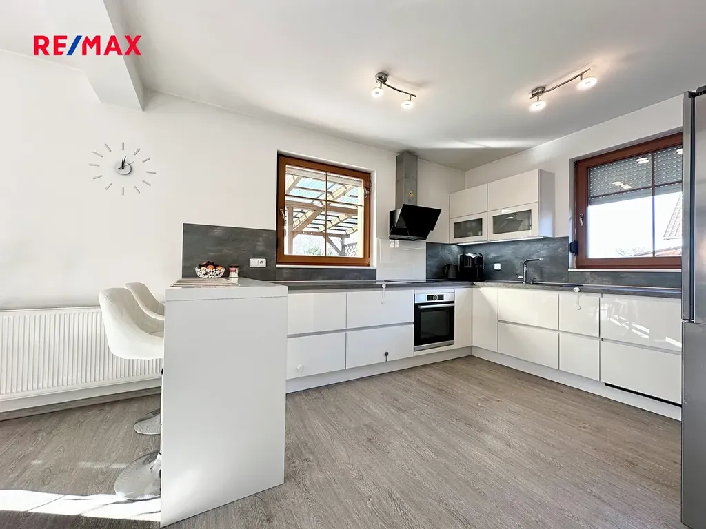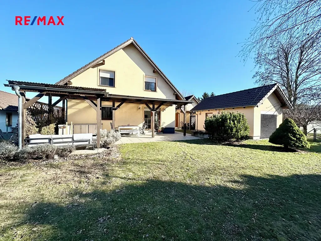 Exkluzivně v prodeji RE/MAX Central nabízíme ke koupi prostorný rodinný dům se saunou, pergolou a zahradou – U Hřiště 438, Dolní Rychnov (pozemek 977 m², užitná plocha přesahuje 220 m²).