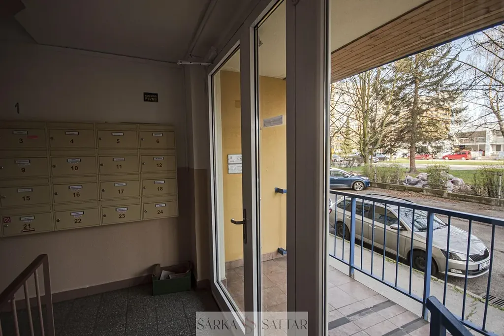 Dům má dva vchody, vchody jsou na chip, je zde 1 výtah. Sklep má 2m2 , je čistý, prázdný a jsou zde držáky na kola.