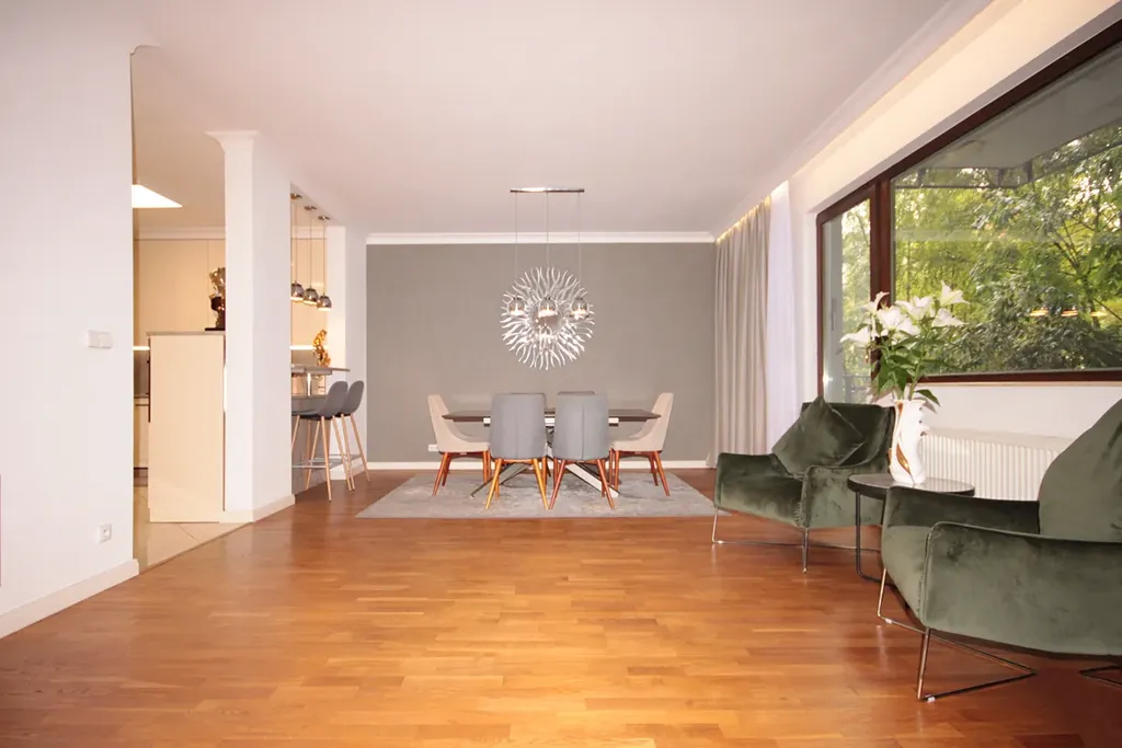 Velkorysý prostor: Byt disponuje hlavní ložnicí o ploše 23 m2 s vlastní koupelnou a šatnou. Další dvě ložnice (16 m2 a 11,5 m2) jsou ideální pro rodinu či hosty. Prostorný obývací pokoj (40 m2) s přístupem na balkon (8 m²) nabízí nádherný výhled do parku.