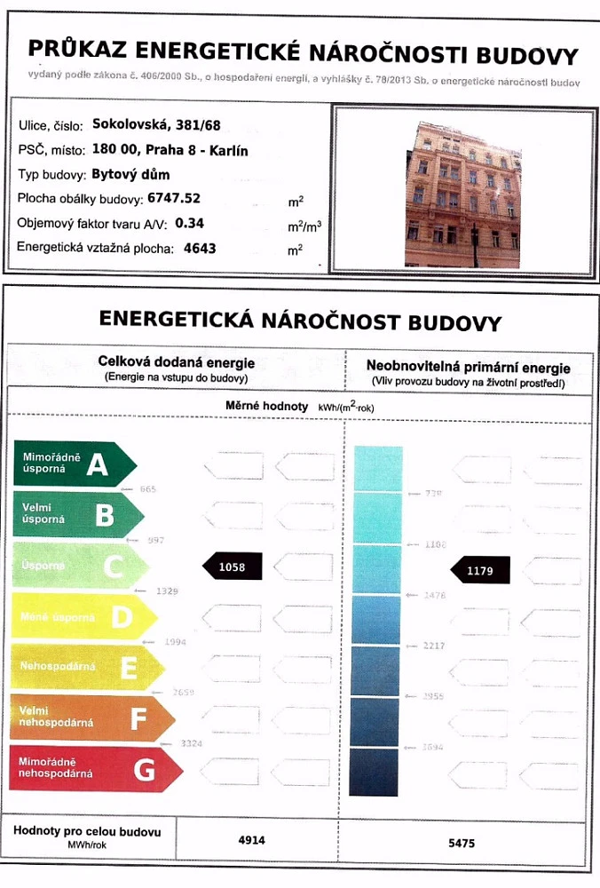 Energetická náročnost budovy je třídy C – úsporná. Součástí bytu je sklepní kóje a možnost parkování ve vnitrobloku.