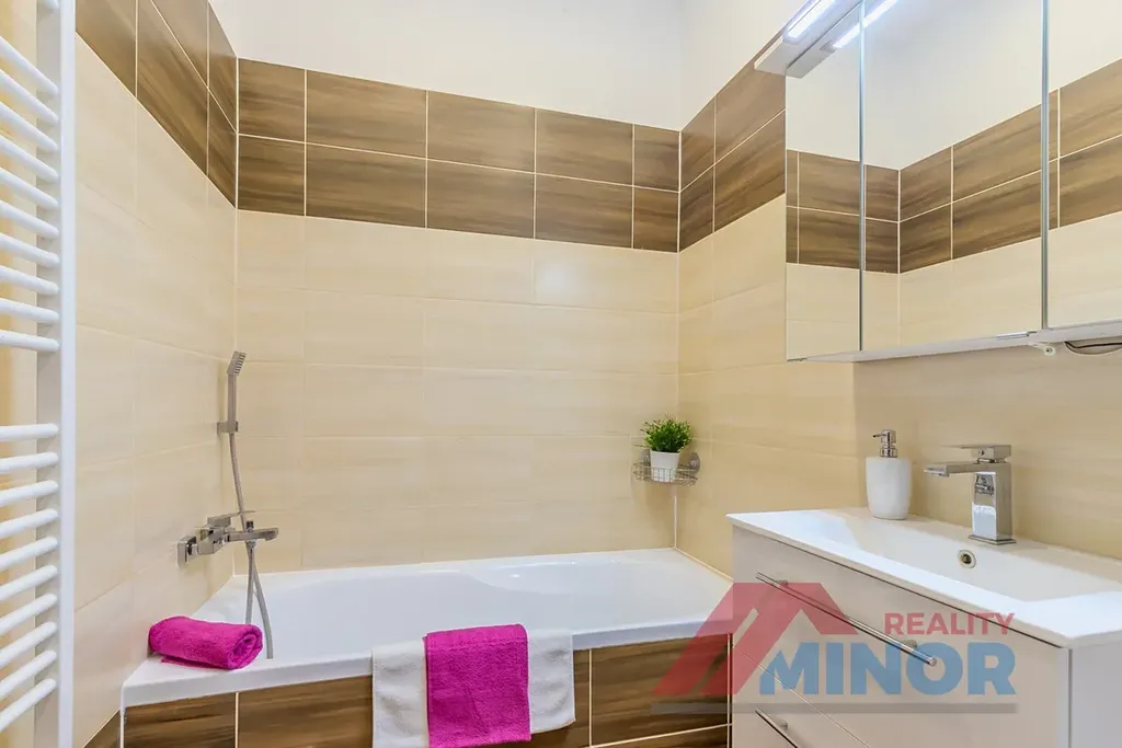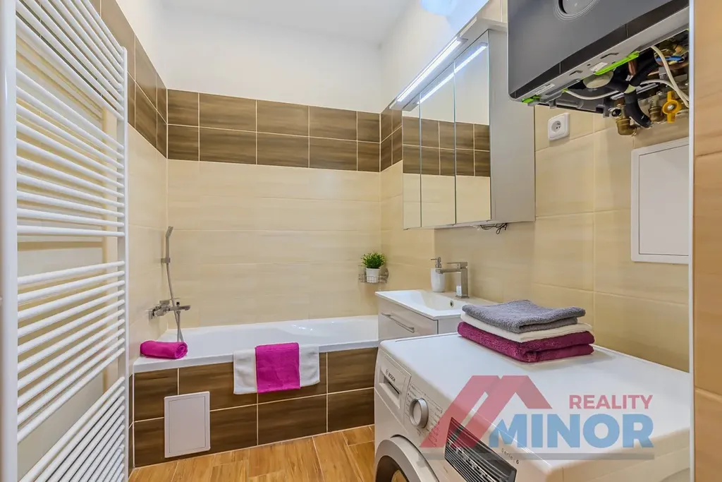 V bytě je zděné bytové jádro. Na podlahách je položena plovoucí podlaha a dlažba. Bytová jednotka má nové interiérové i vstupní dveře se zárubněmi, plastová okna s parapety a moderní kuchyňskou linku s vestavěnými spotřebiči (myčka nádobí, digestoř, varná deska, elektrická trouba). V koupelně bylo použito moderní sanitární vybavení. Výhodou je vlastní plynový kotel, který byl nedávno instalován nový a který zajišťuje vytápění a ohřev vody, což zaručuje nízké provozní náklady. Ke každé bytové jednotce náleží sklepní kóje, vlastní parkovací místo (oplocené parkoviště s vjezdem na závoru s dálkovým ovládáním) a k dispozici je taktéž společná kočárkárna.