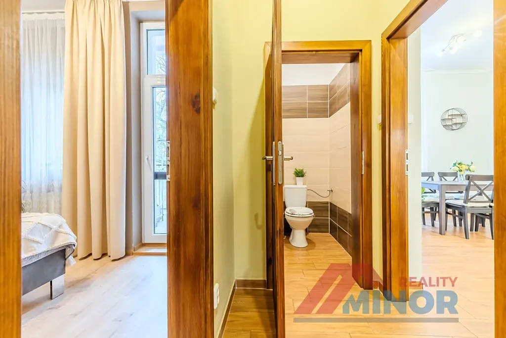Bytová jednotka o dispozičním řešení 3+1 a velikosti 94 m2 prošla v roce 2020 celkovou rekonstrukcí. V rámci rekonstrukce byly vyzděny nové příčky, vybetonované podlahy, položeny nové podlahové krytiny, vyměněny rozvody elektřiny, vody a odpadů. Byt se nachází v druhém patře a sestává ze vstupní chodby, tří pokojů, kuchyně se spíží, koupelny, WC a lodžie o velikosti 4 m2.