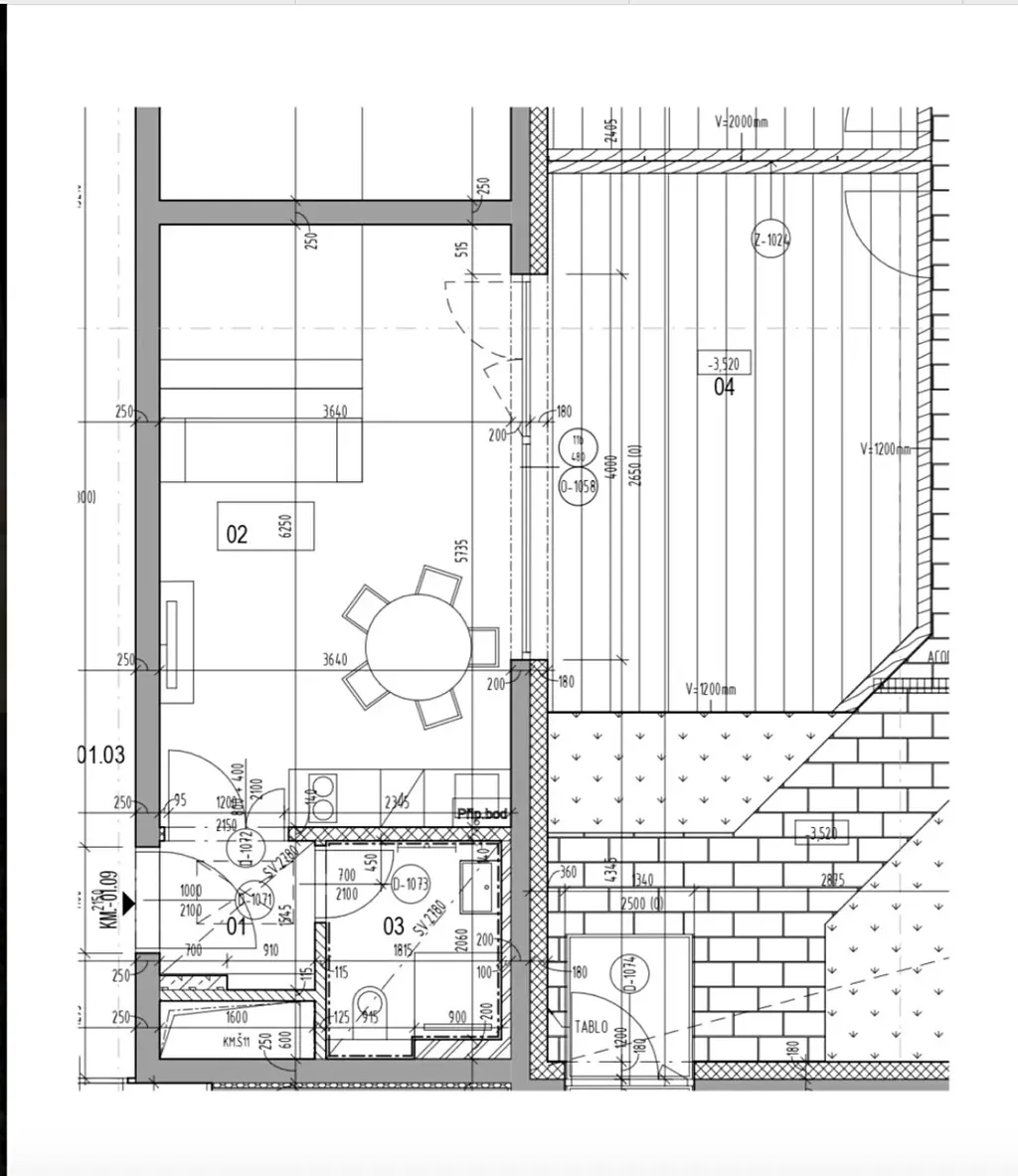 Světlý byt o dispozici 1+kk, 35 m² zaujme vysokými stropy, velkoformátovými okny a především nábytkem na míru promyšleným do posledního detailu. T pokoje je přímý vstup na terasu.