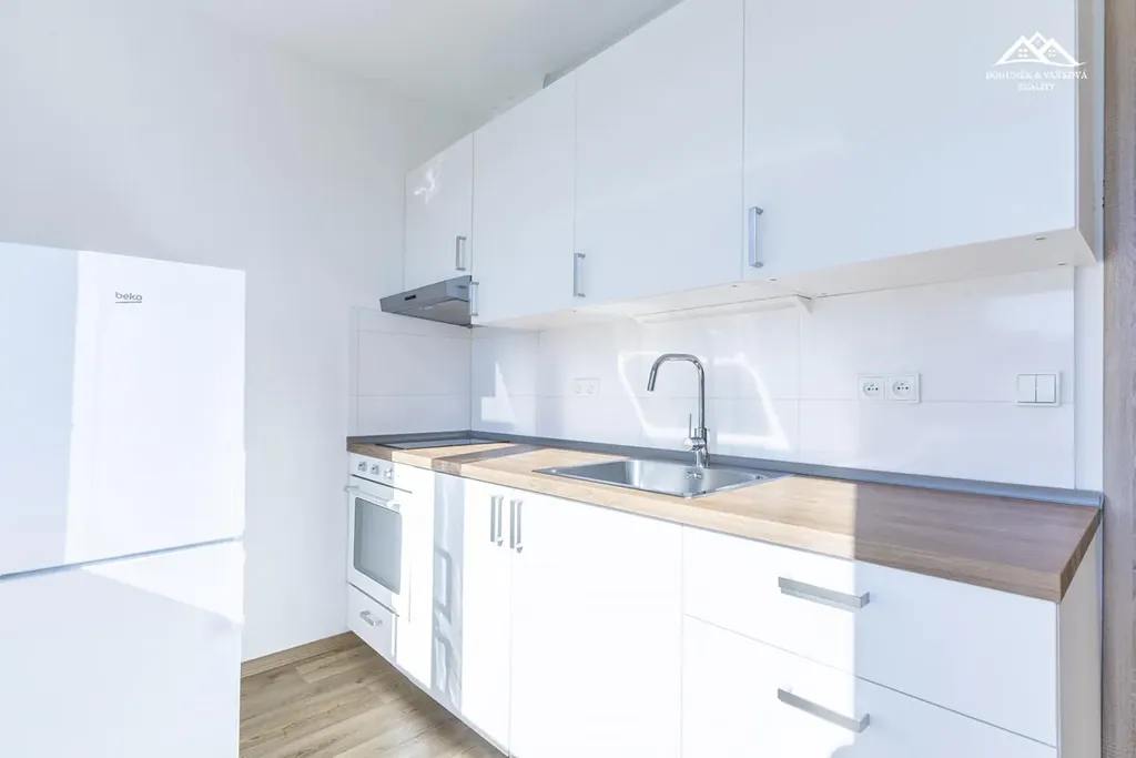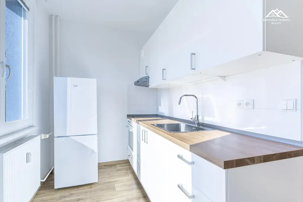 Byt o celkové ploše 35 m2 se nachází v 1.podlaží zatepleného panelového domu a dispozičně je řešen vstupní chodbou, komorou, koupelnou se sprchou, umyvadlem a toaletou, kuchyní s novou kuchyňskou linkou vybavenou pračkou, deskou na vaření, troubou, lednicí, dále je zde samostatná ložnice.
