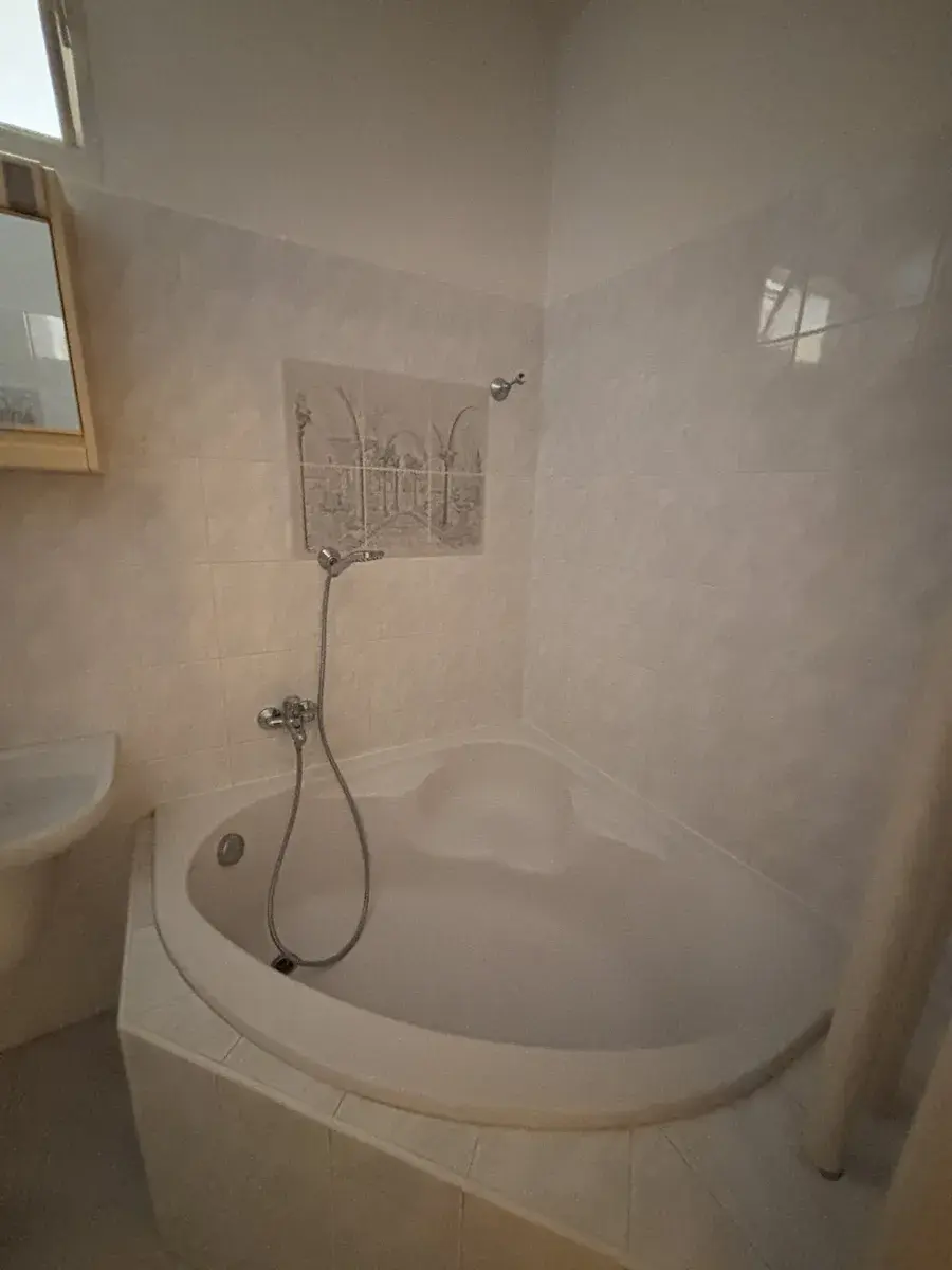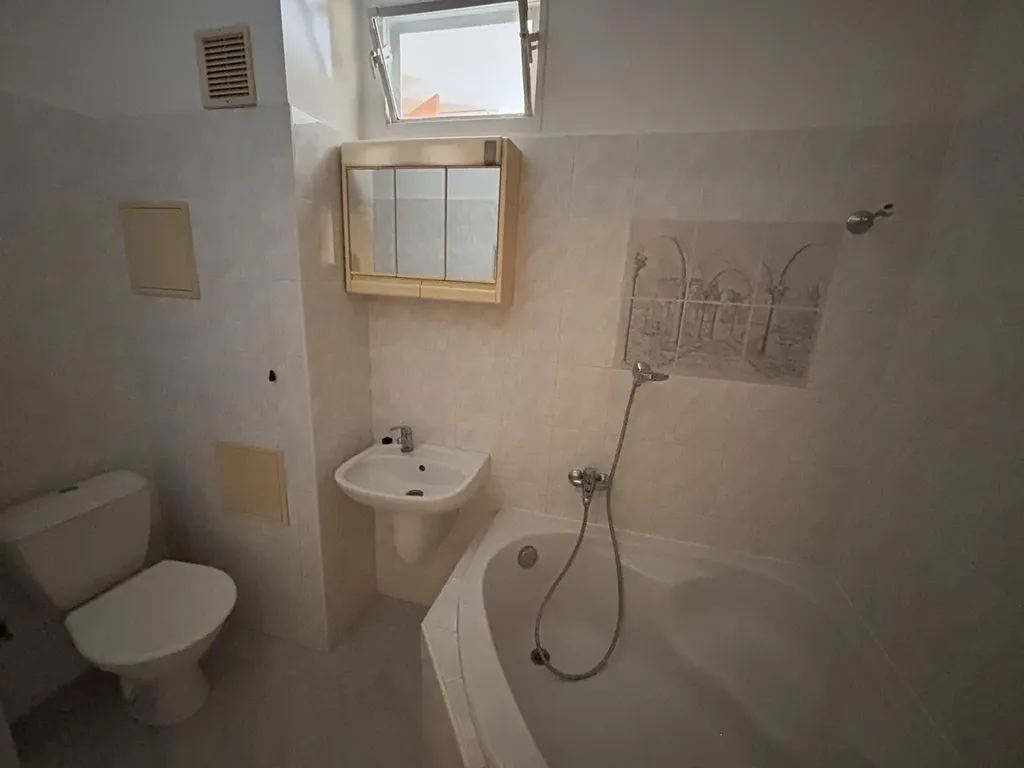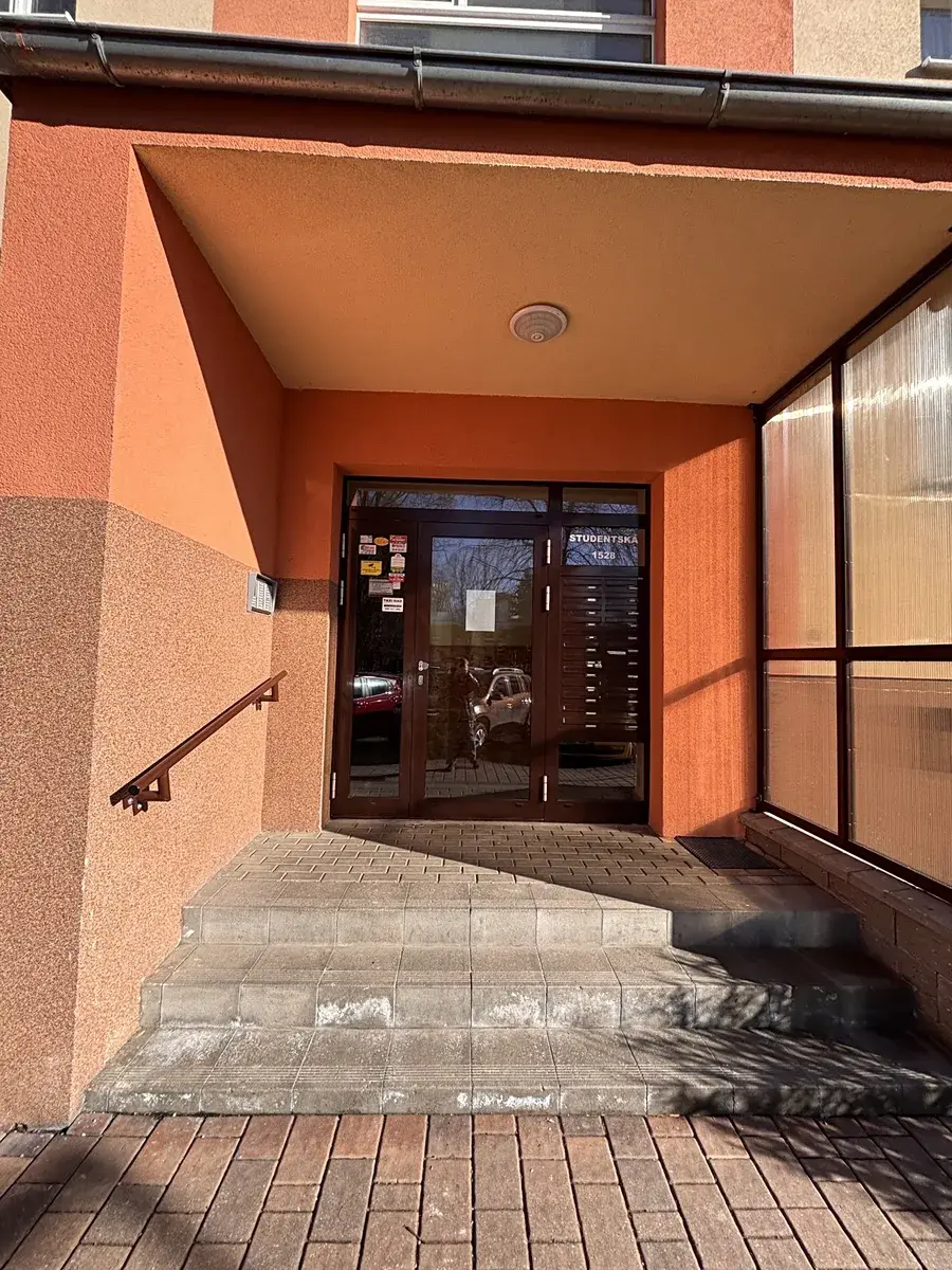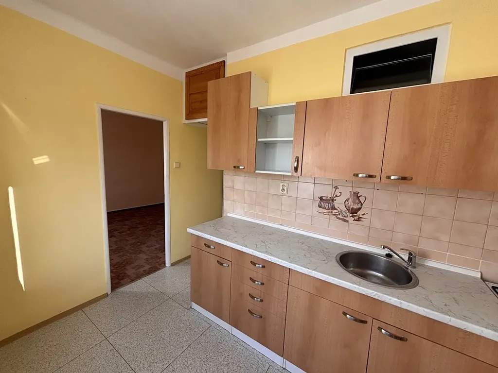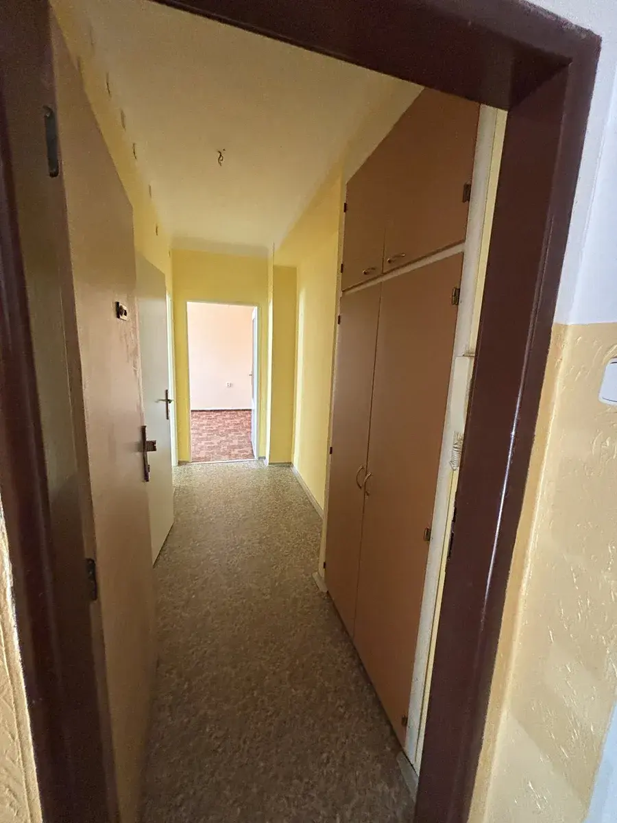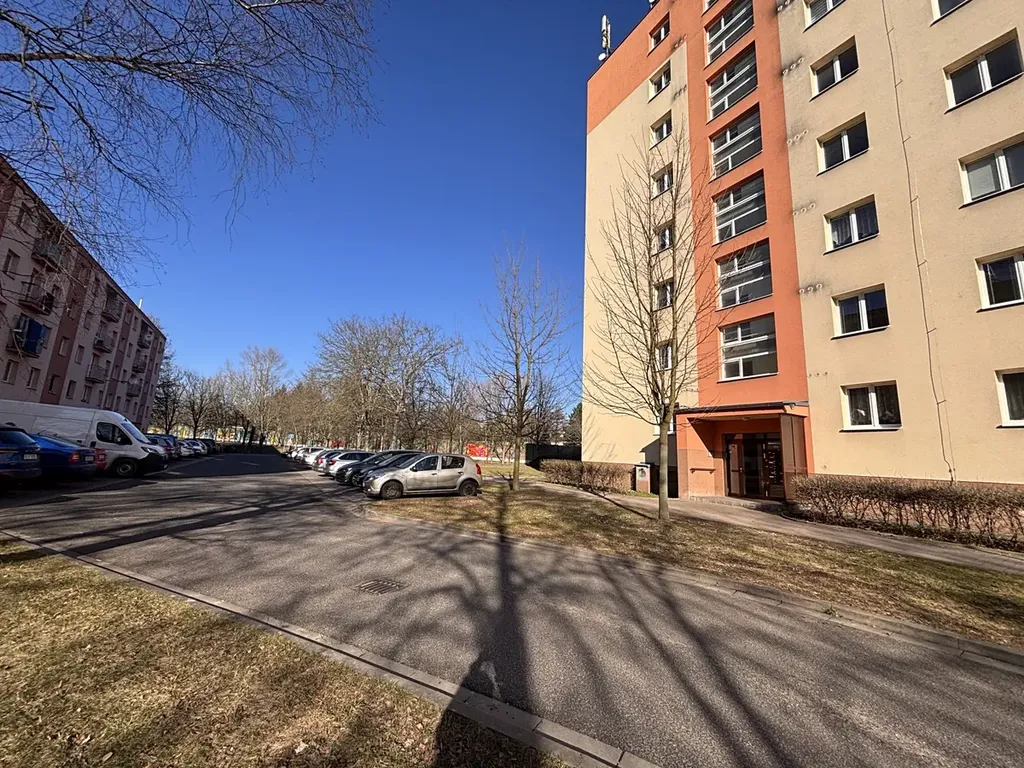 Byt je bez balkonu, se zděným jádrem, menší kuchyní a 2 většími pokoji. Celková výměra je 53,7m2. Náklady na provoz bytu jsou velmi nízké ( pro 2 osoby cca 4.000,-Kč ). Po vstupu do předsíně, je vchod do koupelny s rohovou vanou, umyvadlem, WC a místem na pračku. Z předsíně je vstup do kuchyně a do obývacího pokoje. Z obývacího pokoje jsou další dveře do kuchyně a do ložnice. Z ložnice je výhled do parku za domem. Kuchyň má starší kuchyňskou linku, vestavěnou špajz a pod oknem prostor na jídelní stůl. Obývací pokoj a ložnice jsou velmi prostorné. V předsíni je menší vestavěná skříň.