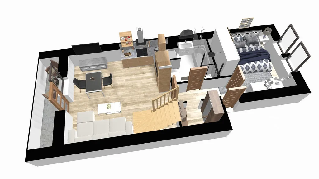 • Po dřevěném schodišti z obývací části se dostanete do útulného podkrovního pokoje.