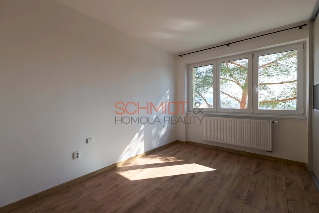 Bytová jednotka nabízí podlahovou plochu 74,5 m², bez sklepa a balkonu, potom užitnou plochu 68,7 m². Nachází se ve čtvrtém nadzemním podlaží, díky čemuž je z každé ze tří místností pěkný výhled do širokého okolí a byt je přirozeně prosvětlený.